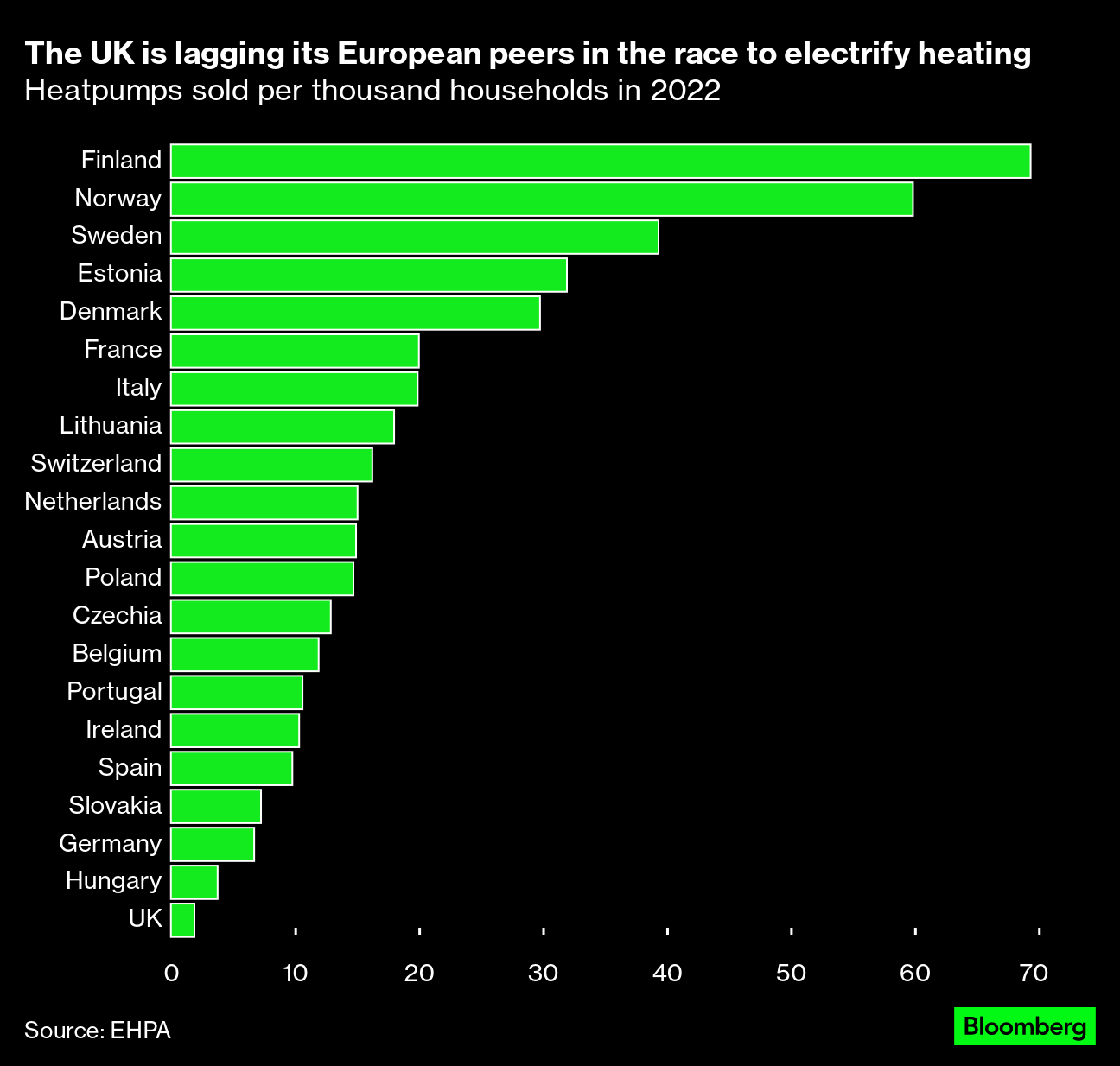 Decarbonizing home heating is one of the steepest hills the UK has to climb to reach net zero because the housing stock is warmed predominantly by gas and, in some cases, oil boilers. The country is also lagging behind other European nations in installing heat pumps.