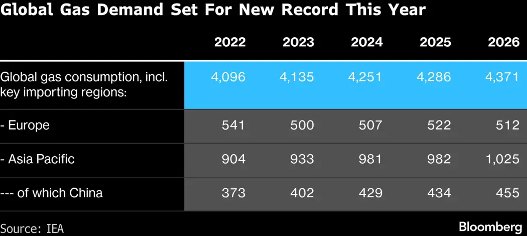 Looking ahead, the IEA expects global gas consumption to rise nearly 2% this year to a record, following growth of less than 1% in 2025. Asia is forecast to be the main driver.
