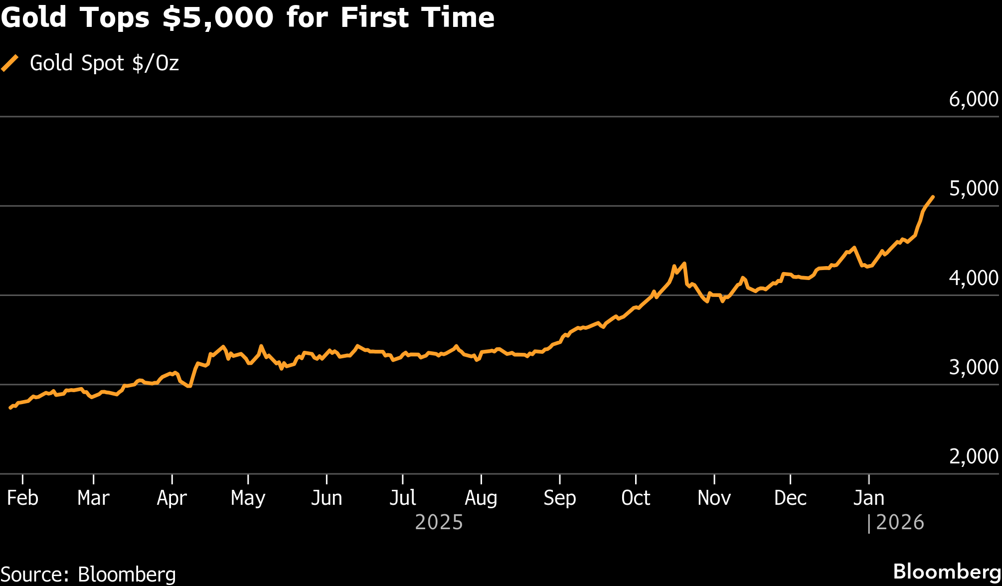 Dollar Drops While Gold Tops $5,000, Stocks Rise: Markets Wrap