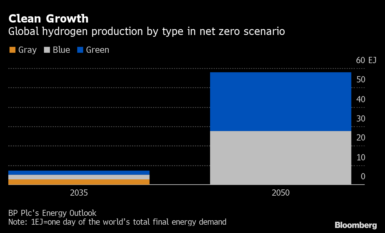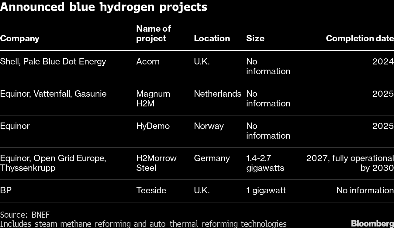 BP Plc, Sinopec, Equinor ASA and Royal Dutch Shell Plc are among the producers looking to hydrogen to help secure demand that otherwise may falter as decarbonization speeds up. They want to utilize existing pipelines, storage tankers and fuel supply to make blue hydrogen, a process that uses natural gas but captures the carbon emissions and stores them.