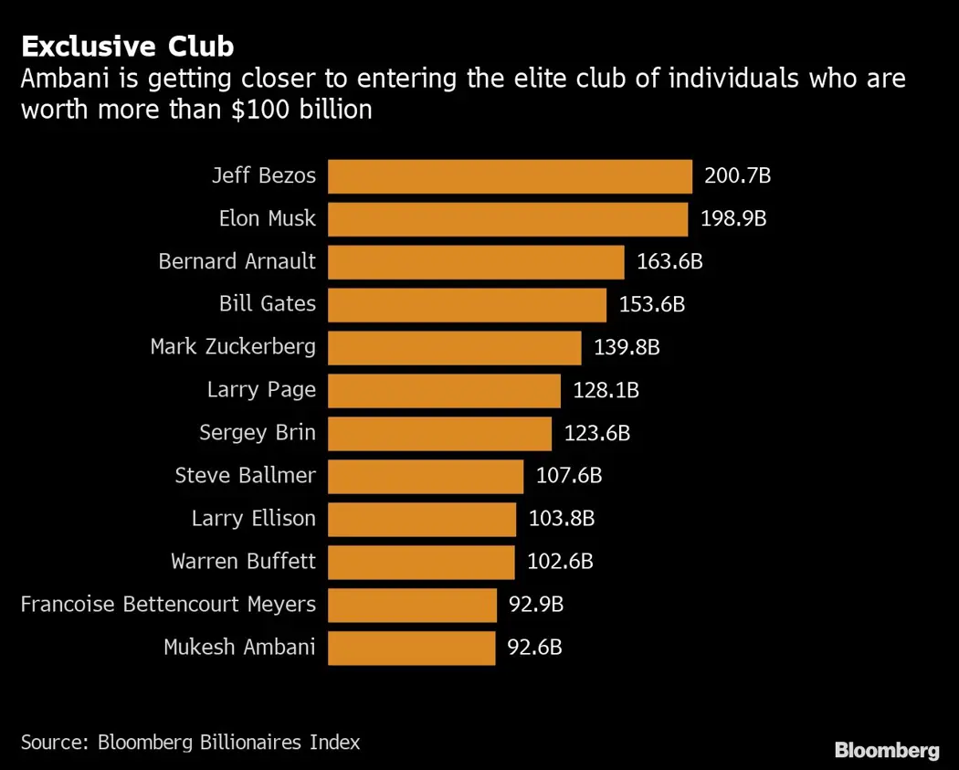 Mukesh Ambani Races Toward World’s Exclusive $100 Billion Wealth Club