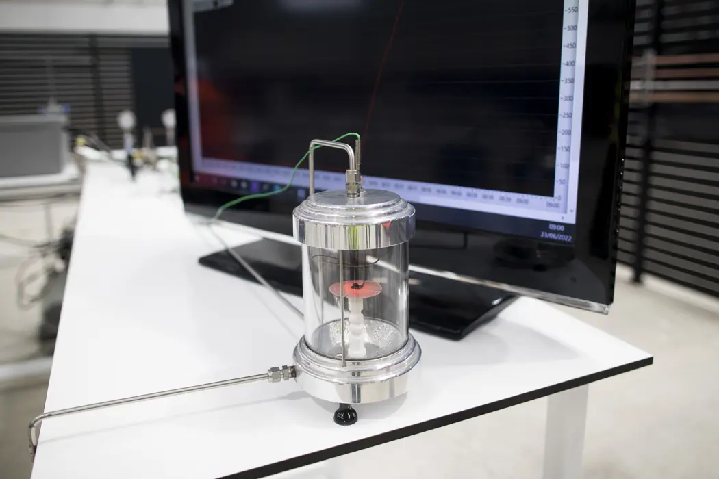 Wearing high-vis jackets and safety goggles, Chief Technology Officer Steve Heaton and another member of the team demonstrated an experimental model that looks like a French coffee press. Bottled hydrogen and oxygen are fed into a glass cylinder containing the secret catalyst, which quickly turns orange as it heats up to around 700 degrees Celsius (1,292 Fahrenheit). If the technology can scale up, it could ultimately allow power plant operators that burn coal to retrofit generators to run on green hydrogen without having to construct a completely new plant.