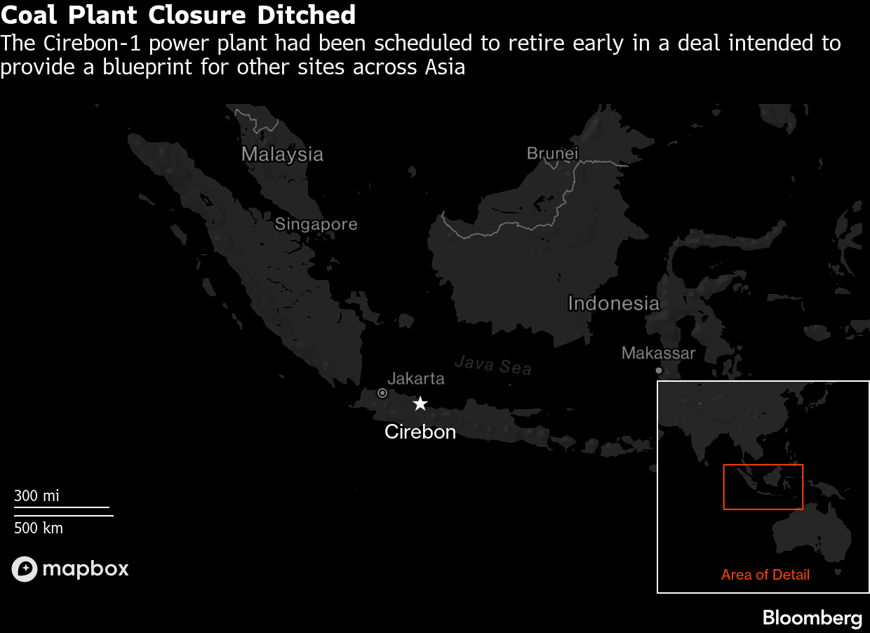 (Bloomberg) -- A coal-fired power plant in Indonesia scheduled to close down early and act as a flagship for efforts to shift Asia’s economies away from the fossil fuel has scrapped proposals to shutter ahead of schedule.