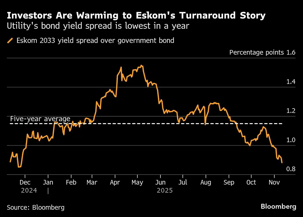 Eskom’s Borrowing Costs Fall as Investors Warm to Turnaround